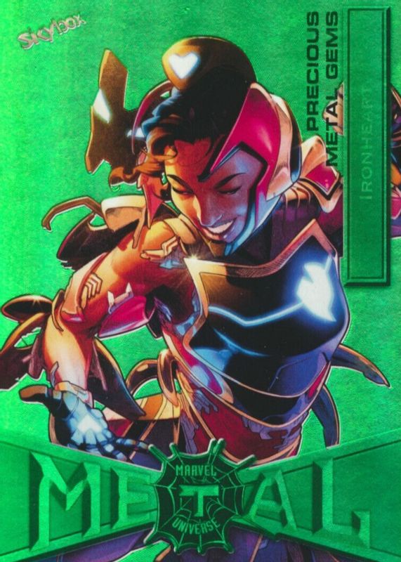 Ironheart 2021 Skybox Marvel Metal Universe Spider-Man #38 Precious Metal Gems Green /10 RAW Price Guide