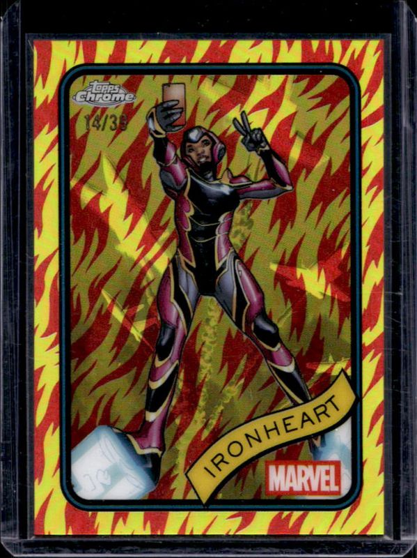 The Ironheart 2025 Topps Chrome #71 Human Torch Refractor /39 card is 1 of 23 Ironheart's card variations in the 2025 Topps Chrome set being tracked by Sports Card Investor, including Base, Refractor, Yellow Lava Refractor, Spider Web Refractor /399, and Blue Refractor /299.