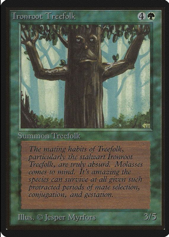 The Ironroot Treefolk 1993 Beta Edition Base card in Raw condition has moved down -$0.51 (-20.4%) in the last 30 days and was last sold for $1.99 .