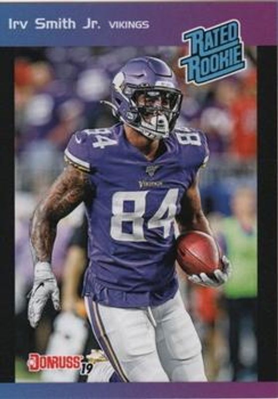 The Irv Smith Jr. 2019 Panini Instant #12 Rated Rookie Retro /280 card is 1 of 19 Irv Smith Jr.'s card variations in the 2019 Panini Instant set being tracked by Sports Card Investor, including Draft Night, NFL Playoffs, Draft Night - Black /25, Autographs /10, and Centennial Leather /10.