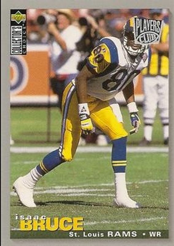The Isaac Bruce 1995 Upper Deck Collector's Choice #301 Player's Club card is 1 of 3 Isaac Bruce's card variations in the 1995 Upper Deck Collector's Choice set being tracked by Sports Card Investor, including Base, and Platinum Player's Club.
