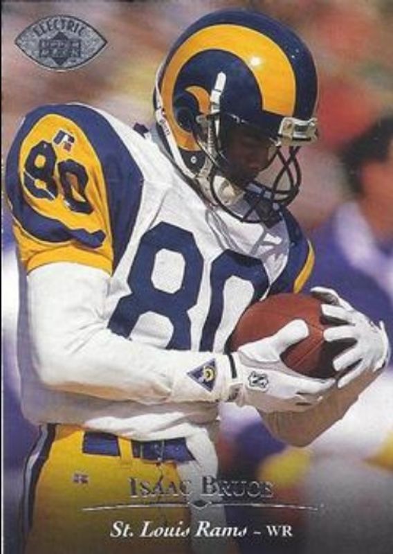 The Isaac Bruce 1995 Upper Deck #239 Electric card is 1 of 3 Isaac Bruce's card variations in the 1995 Upper Deck set being tracked by Sports Card Investor, including Base, and Electric Gold.