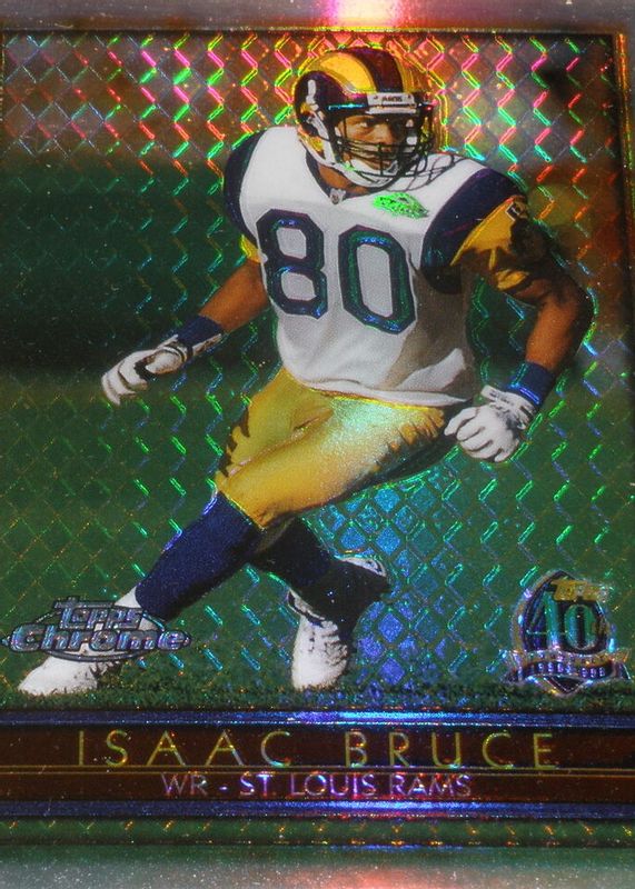 The Isaac Bruce 1996 Topps Chrome #60 Refractor card in Raw condition has moved up $8.99 (+180%) in the last 30 days and was last sold for $13.99 .