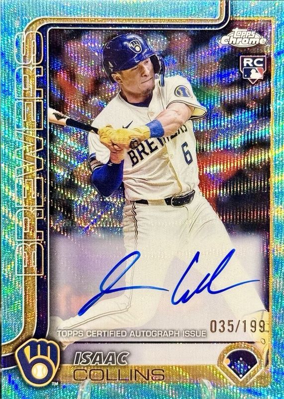 2025 Topps Chrome Isaac Collins Rookie Aqua Wave Auto 11/199 SP Brewers RC