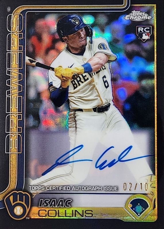 2025 Topps Chrome Isaac Collins Rookie Auto RC Autos Black Refractor /10 Brewers