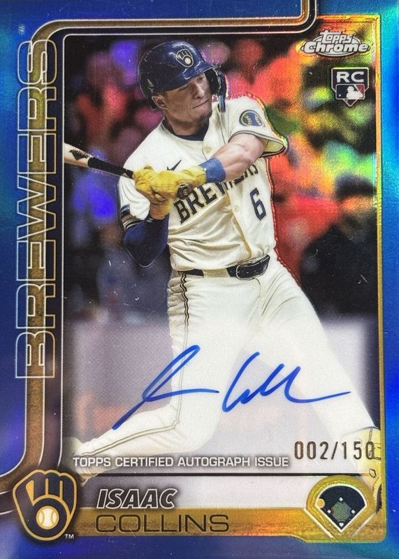 2025 Topps Chrome Baseball Isaac Collins RC Rookie Auto Blue Refractor/150