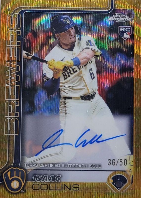 Isaac Collins 2025 Topps Chrome Gold Wave Rookie Auto /50 ROY! Brewers!