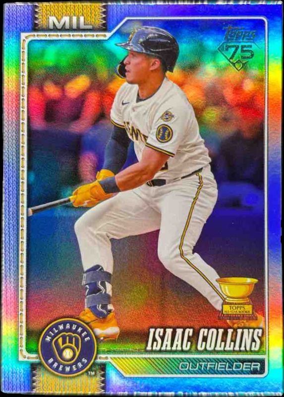 The Isaac Collins 2026 Topps #202 Rainbow Foil card is 1 of 65 Isaac Collins' card variations in the 2026 Topps set being tracked by Sports Card Investor, including Base, Aqua Holo Foil, Aqua Rainbow Foil, Diamante Foil, and Holo Foil.
