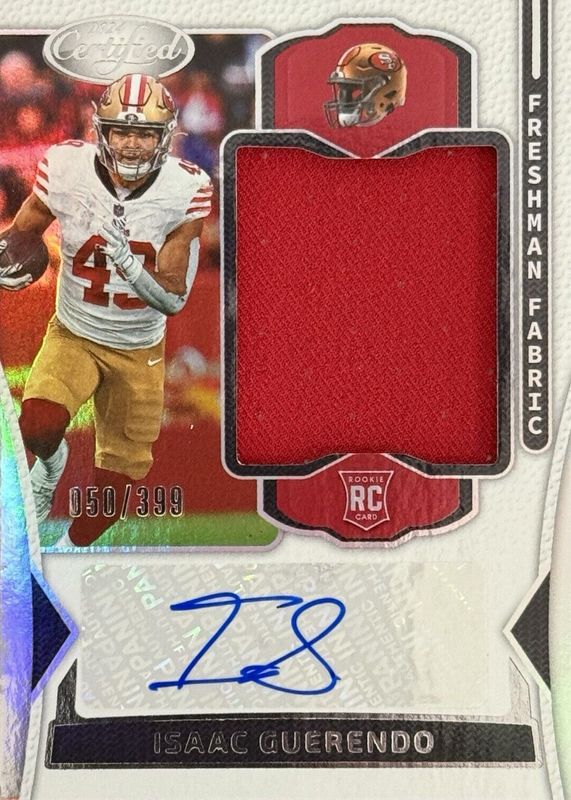 2024 Certified Freshman Fabric Rookie Patch Auto Isaac Guerendo # /399 49ers RPA