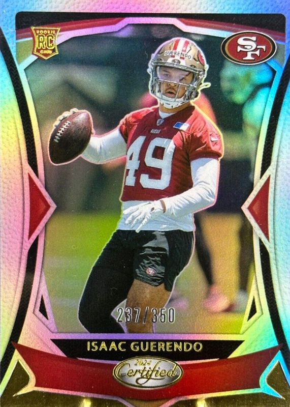 This card is 1 of 37 Isaac Guerendo's card variations in the 2024 Certified set being tracked by Sports Card Investor, including Base Rookie /400, Mirror Bronze /275, Mirror Pink /225, Mirror Orange /150, and Mirror Red /100.