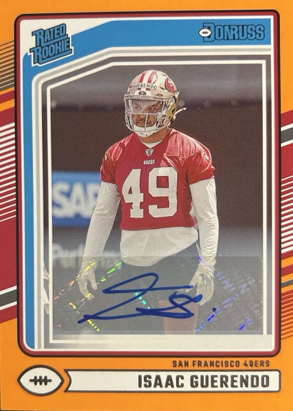 π2024 Donruss Rated Rookie Orange Isaac Guerendo Auto San Francisco 49ersπ