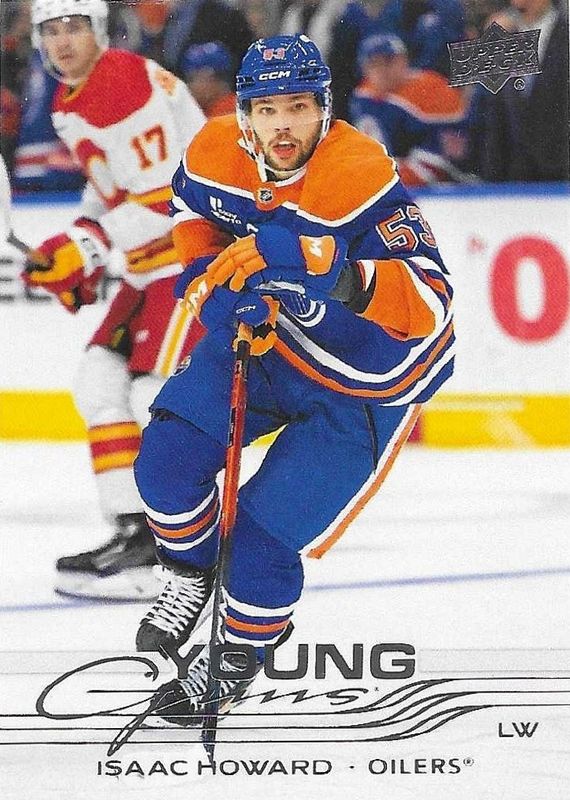 This card is 1 of 9 Isaac Howard's card variations in the 2025 Upper Deck set being tracked by Sports Card Investor, including Young Guns - Clear Cut, Young Guns - Outburst Silver, Young Guns - Oversized, Young Guns - Deluxe /250, and Young Guns - Exclusives /100.