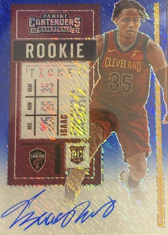 Auctions Ending Soon for Isaac Okoro 2020 Contenders #145 Rookie Ticket Auto - Premium Blue Shimmer /20 (Facing Forward) RAW