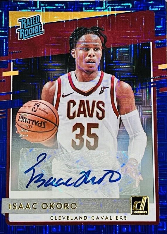 The Isaac Okoro 2020 Donruss #203 Rated Rookie Signatures - Choice Blue /49 card in Raw condition has not changed in price in the last 30 days and was last sold for $6.00 .