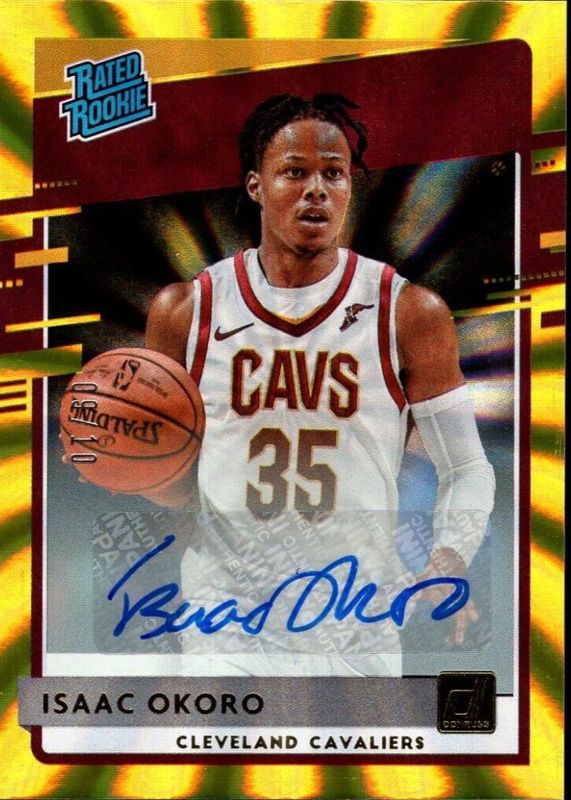 The Isaac Okoro 2020 Donruss #203 Rated Rookie Signatures - Holo Gold Laser /10 card in Raw condition has not changed in price in the last 30 days and was last sold for $29.99 .