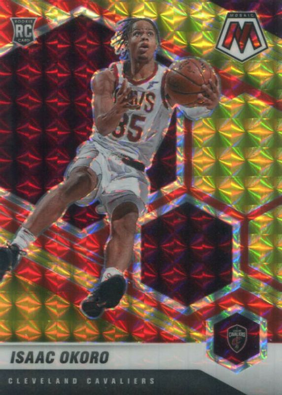 The Isaac Okoro 2020 Mosaic #212 Choice Fusion Red & Yellow /88 Rookie card in Raw condition has not changed in price in the last 30 days and was last sold for $20.00 .
