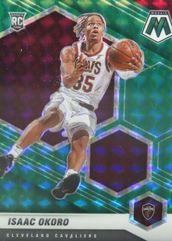 ISAAC OKORO 2020 PANINI MOSAIC GREEN MOSAIC PRIZM ROOKIE CARD #212 CAVELIERS RC