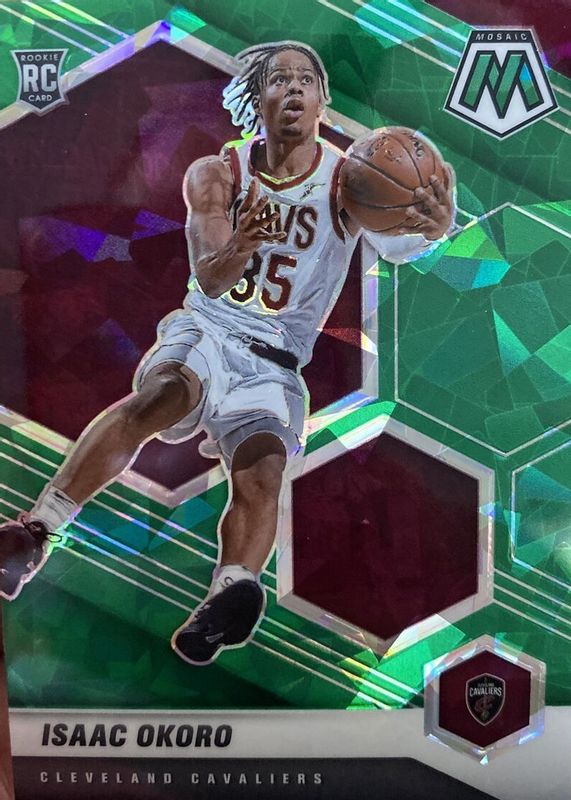 2020-21 Panini Mosaic Isaac Okoro RC Green Cracked Ice SP #212 Cavaliers
