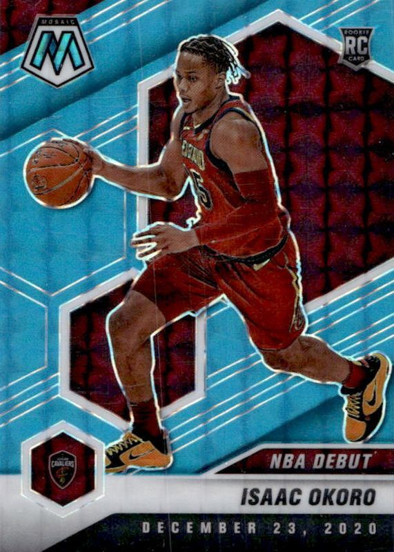 The Isaac Okoro 2020 Mosaic #271 NBA Debut - Blue Fluorescent /15 Rookie card in Raw condition has not changed in price in the last 30 days and was last sold for $6.50 .