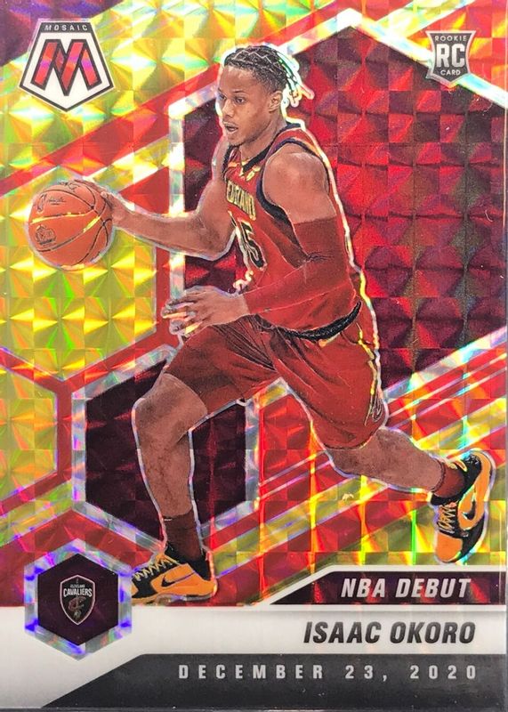 Best Prices Available For Sale of Isaac Okoro 2020 Mosaic #271 NBA Debut - Choice Fusion Red & Yellow /88