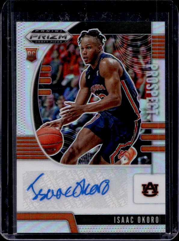 The Isaac Okoro 2020 Prizm Draft Picks #PA-IO Prospect Autographs - Silver Rookie card is 1 of 122 Isaac Okoro's card variations in the 2020 Prizm Draft Picks set being tracked by Sports Card Investor, including #84 Base, #4 Base, #44 Base, #84 Choice Blue Yellow Green, and #4 Choice Blue Yellow Green.