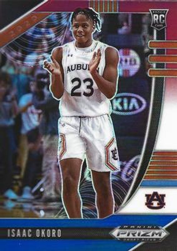 The Isaac Okoro 2020 Prizm Draft Picks #44 Red White Blue Rookie card is 1 of 122 Isaac Okoro's card variations in the 2020 Prizm Draft Picks set being tracked by Sports Card Investor, including #84 Base, #4 Base, #44 Base, #84 Choice Blue Yellow Green, and #4 Choice Blue Yellow Green.