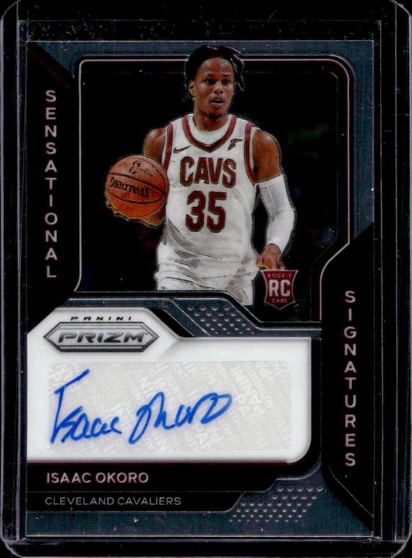 The Isaac Okoro 2020 Prizm #SS-IOK Sensational Signatures Rookie card is 1 of 77 Isaac Okoro's card variations in the 2020 Prizm set being tracked by Sports Card Investor, including #298 Base, #298 Choice Blue Yellow Green, #298 Fast Break, #298b Fast Break, and #298 Green.