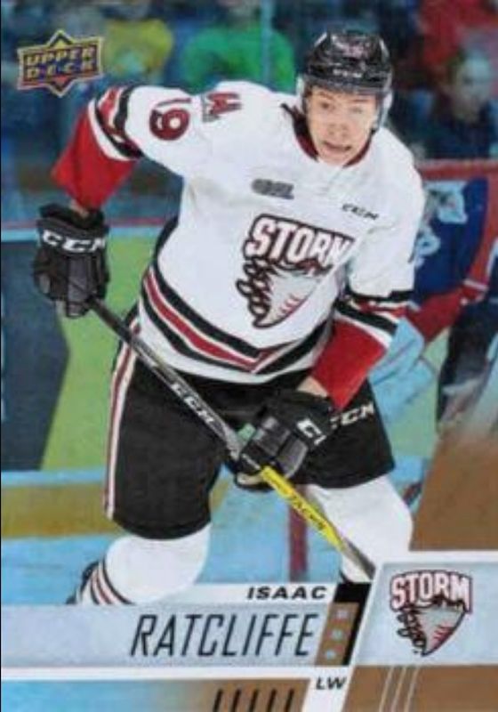 The Isaac Ratcliffe 2017 Upper Deck CHL #68 Rainbow card is 1 of 9 Isaac Ratcliffe's card variations in the 2017 Upper Deck CHL set being tracked by Sports Card Investor, including Base, Red Bordered, Printing Plates Black /1, Printing Plates Cyan /1, and Printing Plates Magenta /1.