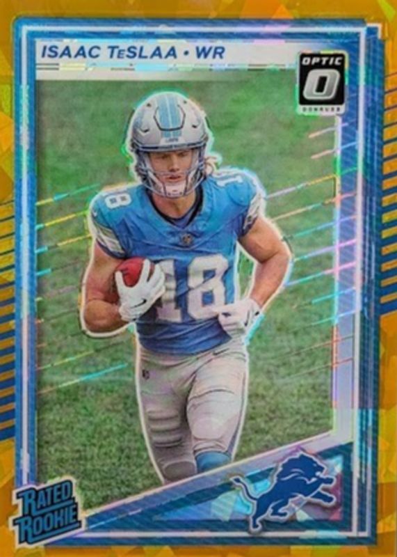 The Isaac TeSlaa 2025 Donruss #338 Optic Preview - Gold Ice /10 Rookie card in Raw condition has not changed in price in the last 30 days and was last sold for $180.00 .