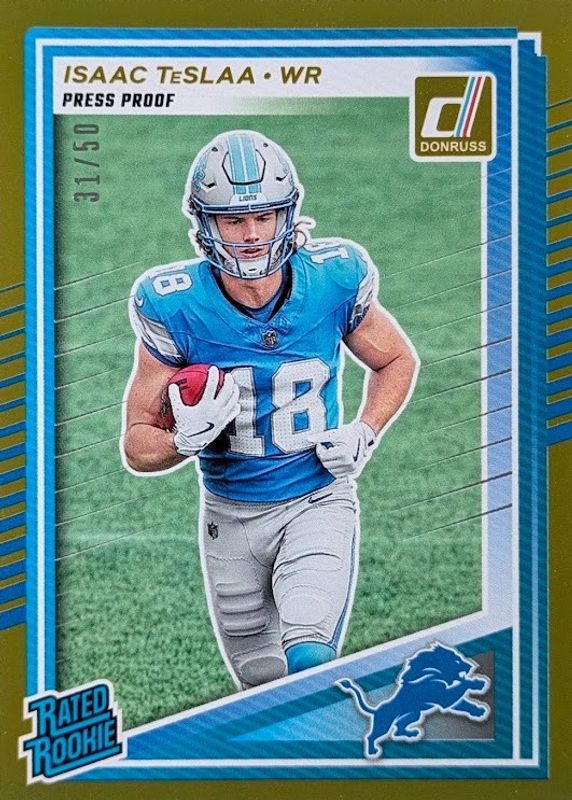 2025 Donruss #338 Isaac TeSlaa Rated Rookie Gold Press Proof /50 - Lions RC