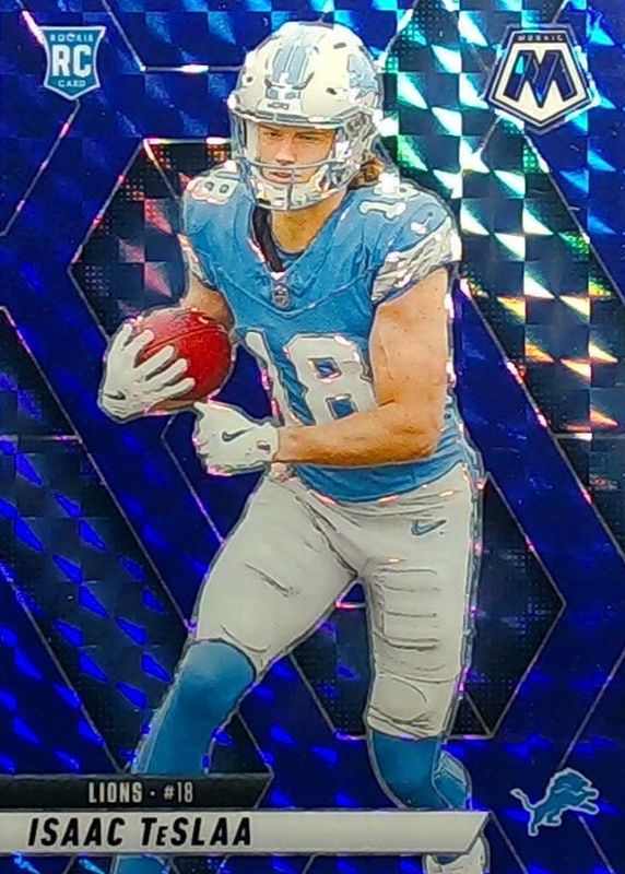 The Isaac TeSlaa 2025 Mosaic #319 Blue /99 Rookie card in Raw condition has moved up $17.49 (+63.6%) in the last 30 days and was last sold for $45.00 .