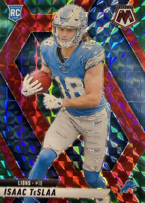 The Isaac TeSlaa 2025 Mosaic #319 Choice Red & Green Rookie card in Raw condition has moved down -$10.75 (-71.7%) in the last 30 days and was last sold for $4.25 .