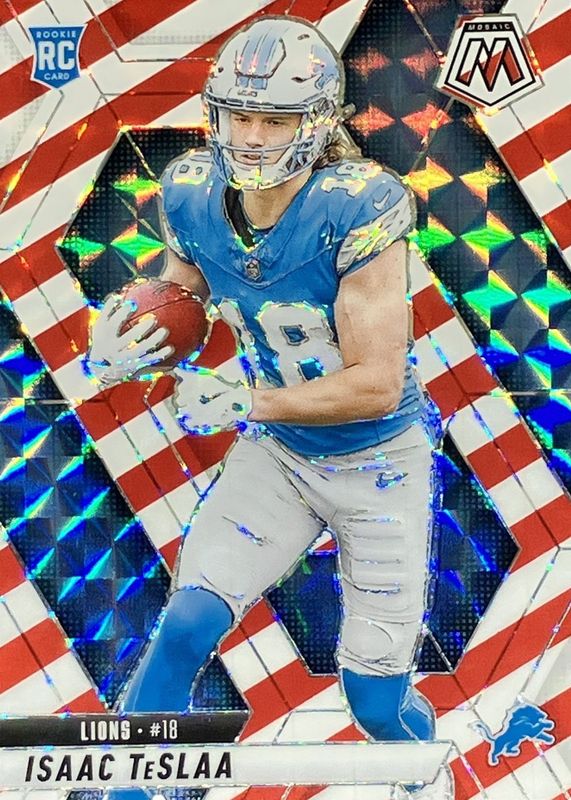 2025 Panini Mosaic Red & White Stripe Isaac Teslaa RC #319 Detroit Lions