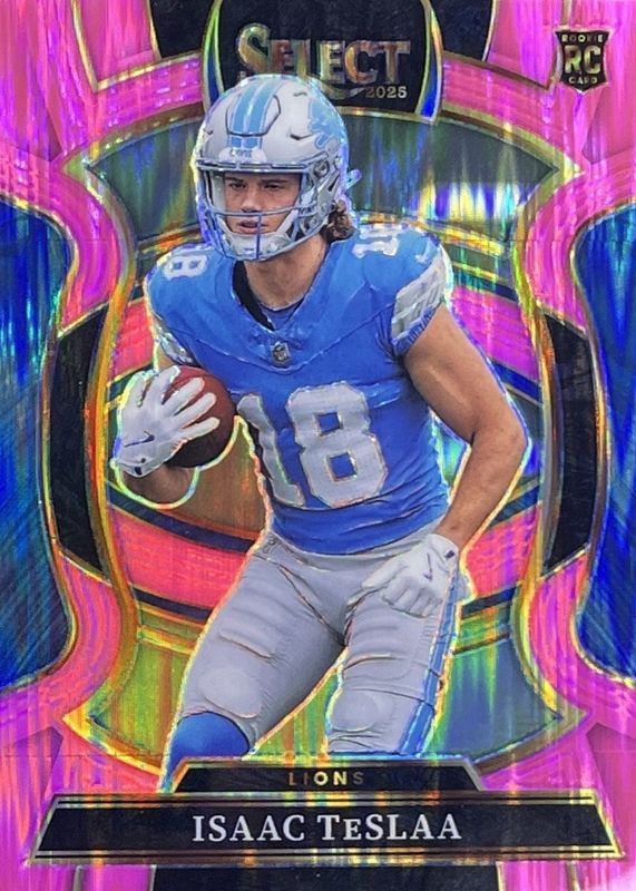 2025 Panini Select Isaac TeSlaa #70 Concourse Pink Prizm Shock RC Lions