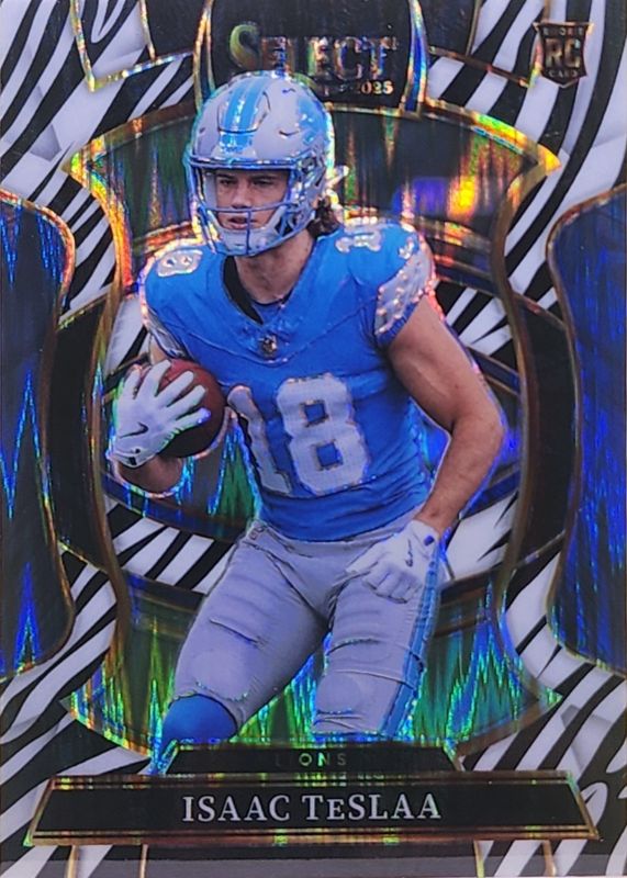 2025 Select Football Isaac Teslaa Zebra Prizm Rookie #70 Detroit Lions 🦓