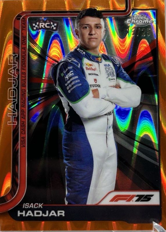Isack Hadjar 2025 Topps Chrome Formula 1 #12 Orange RayWave Refractor /25 Rookie RAW Price Guide