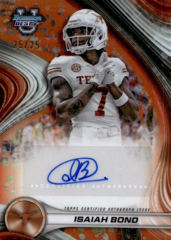 Best Prices Available For Sale of Isaiah Bond 2024 Bowman Best University #BOA-IB Best of 2024 Autographs - Orange Refractor /25