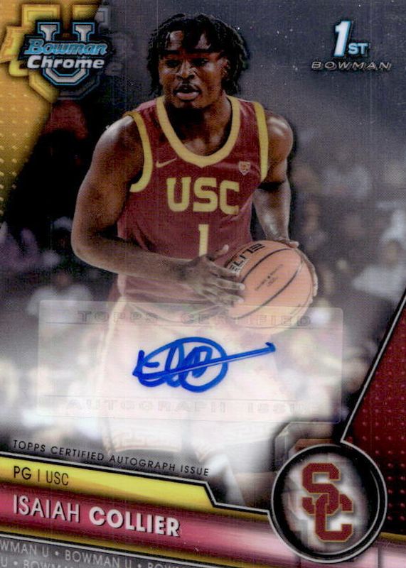 The Isaiah Collier 2023 Bowman Chrome University #BCPA-IC Prospect Auto (1st) card in Raw condition has not changed in price in the last 30 days and was last sold for $3.25 .