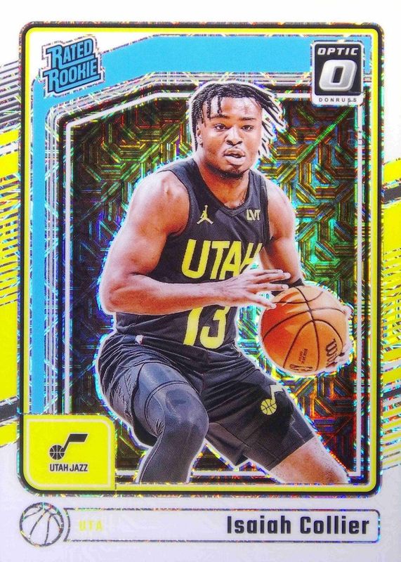 This card is 1 of 76 Isaiah Collier's card variations in the 2024 Optic set being tracked by Sports Card Investor, including Base, Blue Velocity, Checkerboard, Choice, and Fast Break.