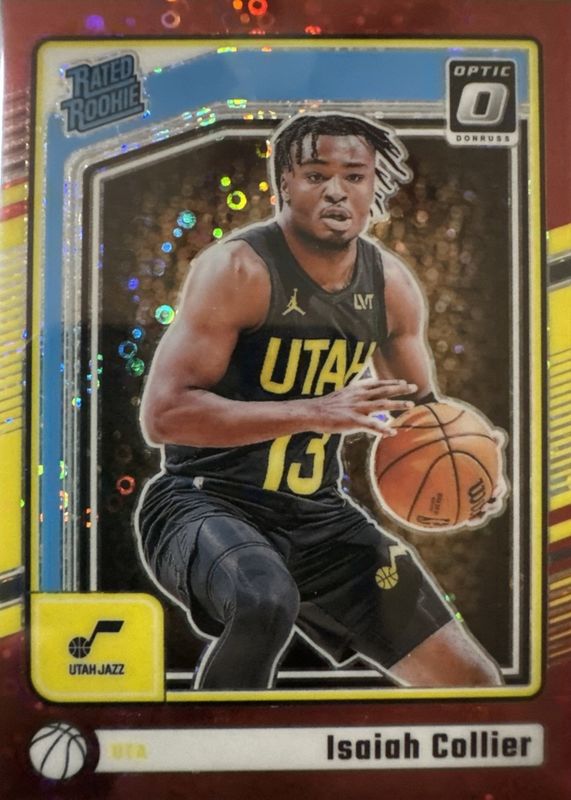 The Isaiah Collier 2024 Optic #295 Red Glitter /75 Rookie card in Raw condition has not changed in price in the last 30 days and was last sold for $8.50 .