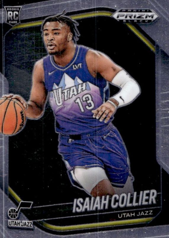 This card is 1 of 27 Isaiah Collier's card variations in the 2024 Prizm Black set being tracked by Sports Card Investor, including Hyper, Pulsar, Ruby Wave, Silver, and Red /299.