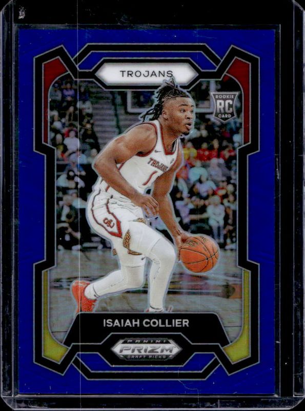 The Isaiah Collier 2024 Prizm Draft Picks #2 Blue /199 Rookie card is 1 of 77 Isaiah Collier's card variations in the 2024 Prizm Draft Picks set being tracked by Sports Card Investor, including #2b Base, #2 Base, #2b Green, #2 Green, and #2b Green Wave.