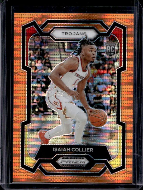 The Isaiah Collier 2024 Prizm Draft Picks #2 Orange Pulsar /49 Rookie card is 1 of 77 Isaiah Collier's card variations in the 2024 Prizm Draft Picks set being tracked by Sports Card Investor, including #2b Base, #2 Base, #2b Green, #2 Green, and #2b Green Wave.