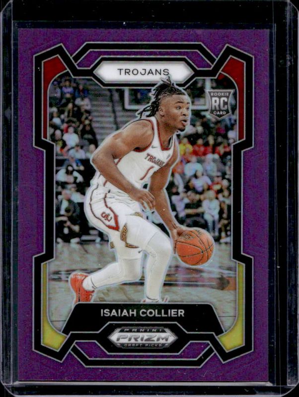 The Isaiah Collier 2024 Prizm Draft Picks #2 Purple /75 Rookie card is 1 of 77 Isaiah Collier's card variations in the 2024 Prizm Draft Picks set being tracked by Sports Card Investor, including #2b Base, #2 Base, #2b Green, #2 Green, and #2b Green Wave.