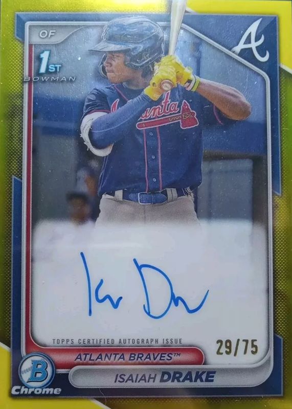 2024 Bowman Isaiah Drake Chrome Auto Yellow Refractor 1st #54/75 Braves