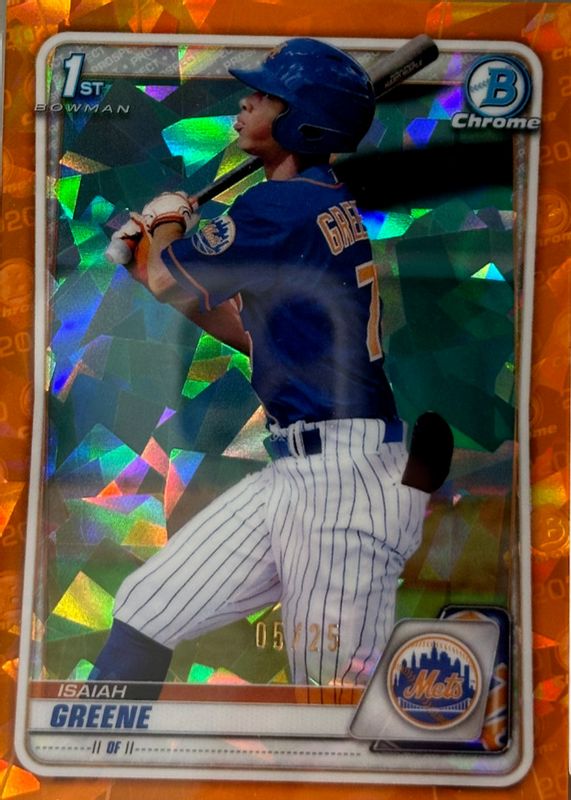 The Isaiah Greene 2020 Bowman Draft Sapphire Edition #BD-77 Chrome - Orange /25 (1st) card in Raw condition has not changed in price in the last 30 days.