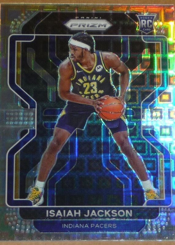 This card is 1 of 67 Isaiah Jackson's card variations in the 2021 Prizm set being tracked by Sports Card Investor, including Base, Blue NBA 75th Anniversary, Blue Wave, Choice Blue Yellow Green, and Factory Set Blue Hyper.