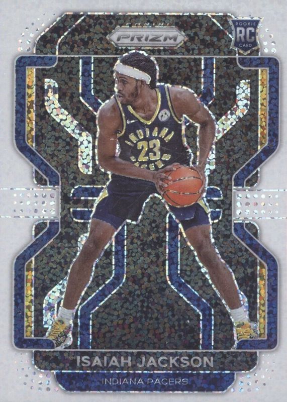 This card is 1 of 67 Isaiah Jackson's card variations in the 2021 Prizm set being tracked by Sports Card Investor, including Base, Blue NBA 75th Anniversary, Blue Wave, Choice Blue Yellow Green, and Factory Set Blue Hyper.