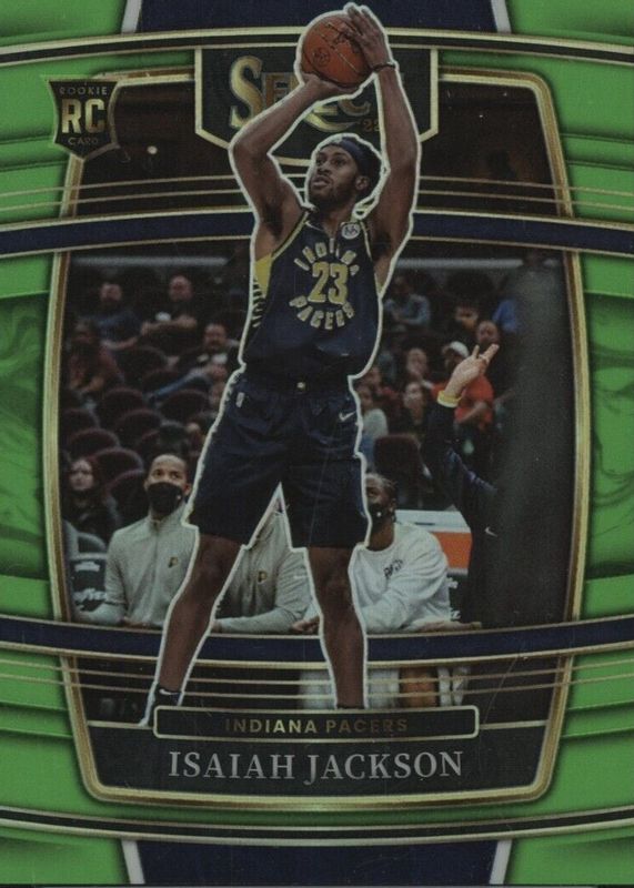 The Isaiah Jackson 2021 Select #55 Concourse Neon Green /75 Rookie card in Raw condition has not changed in price in the last 30 days and was last sold for $1.99 .