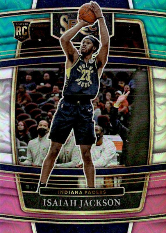This card is 1 of 90 Isaiah Jackson's card variations in the 2021 Select set being tracked by Sports Card Investor, including Concourse, Concourse Green Ice, Concourse Green White Purple, Concourse Silver, and Concourse Blue Cracked Ice.